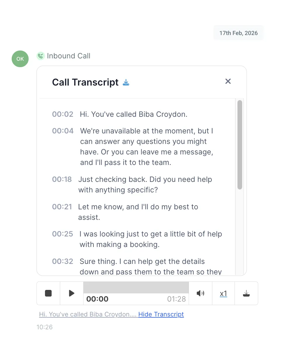 You can't answer 3 calls at the same time. AI can. No busy signals, no missed calls. Every enquiry gets handled, even during your busiest days.
